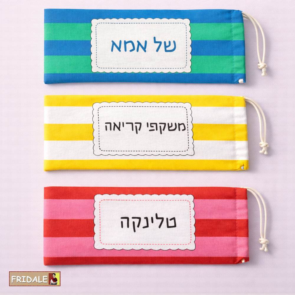 פסי כחול ירוק (של אמא), פסי צהוב לבן (משקפי קריאה), פסי אדום ורוד (טלינקה)